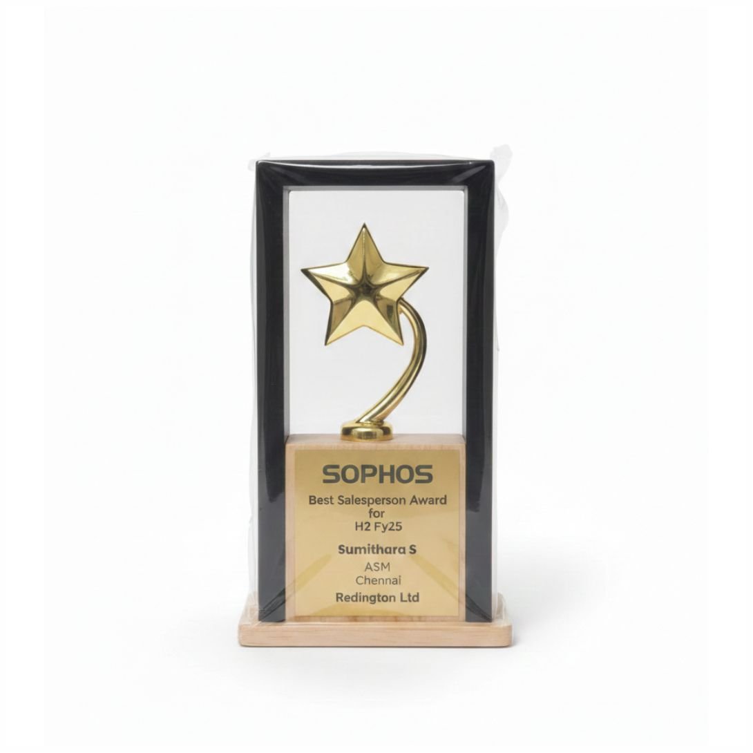 The memento stands 8 inches tall and includes a premium gold-finish plate on the wooden block. This space is perfect for printing company logos, winner names, and specific achievement titles like “Best Salesperson Award.” We use high-quality materials to ensure this keepsake looks professional on any desk or display shelf. It is an ideal choice for corporate recognition, sales milestones, and employee of the month honors.
